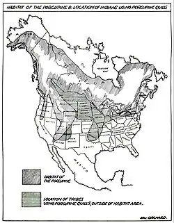 L'ornementation en piquants de porc-épic est une forme d’art caractéristique de l'Amérique du Nord. Avant l'introduction des perles de verre, les piquants constituent un élément décoratif important des peuples qui partagent l'habitat naturel du porc-épic[1], qui comprennent les peuples autochtones subarctiques, des forêts du nord-est et des Grandes Plaines. L'utilisation de piquants dans diverses formes d'art s'étend du Maine à l'Alaska[2]. Des outils servant à l'ornementation ont été découverts en Alberta, au Canada et remontent au VIe siècle de notre ère[3].