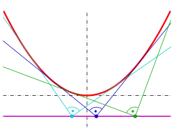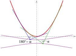 Toute parabole peut être transformée par un mouvement rigide (les angles ne sont pas modifiés) en une parabole d'équation . La pente en un point de cette parabole est . Remplacer donne la représentation paramétrique de la parabole avec la pente tangente comme paramètre : La tangente a pour équation avec le paramètre encore inconnu , qui peut être déterminé en insérant les coordonnées du point de la parabole. On obtient