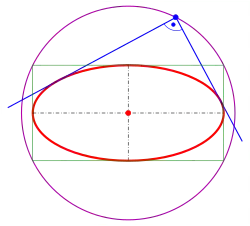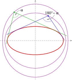 Dans ce cas, les points d'intersection des tangentes orthogonales sont les points du cercle , où a > b.
