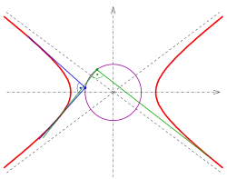 qui a deux solutions correspondant aux deux tangentes passant par . Le terme constant d'une équation quadratique monique est toujours le produit de ses solutions. Donc, si les tangentes se rencontrent en orthogonalement, les équations suivantes sont vérifiées :