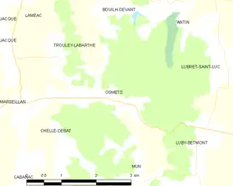 Carte de la commune d'Osmets et des proches communes.