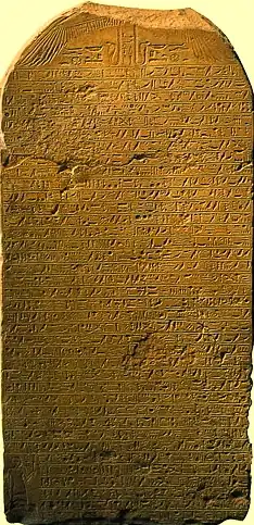 « La 11e année du règne, le second mois de Chémou, Héliopolis a été prise. Le premier mois d'Akhet, le 23e jour, le prince du sud fit irruption dans Tjarou[Note 17],[67]. »