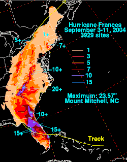 Avec un bilan de 49 morts, dont 37 en Floride, et plus de 9 milliards $US en dommages, Frances est devenu un des ouragans majeurs à frapper les États-Unis. Ce pays a obtenu de l’Organisation météorologique mondiale le retrait du nom pour tout usage futur.