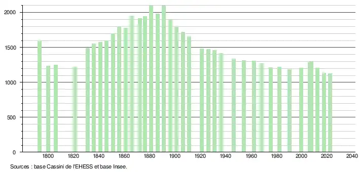 - ↑ Fiches Insee - Populations de référence de la commune pour les années 2006, 2007, 2008, 2009, 2010, 2011, 2012, 2013, 2014, 2015, 2016, 2017, 2018, 2019, 2020, 2021 et 2022.