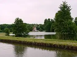 - Vue depuis le pont de la rue Grande à Ouzouer : la Trézée rejoint le canal de Briare pour la deuxième fois