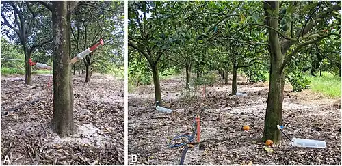 - ↑ Ute Albrecht, Caroline Tardivo, Gerardo Moreno et Jasmine de Freitas, « Managing endemic huanglongbing in commercial citrus production through vascular delivery of oxytetracycline », Crop Protection, , p. 107250 (ISSN 0261-2194, DOI 10.1016/j.cropro.2025.107250, lire en ligne, consulté le )