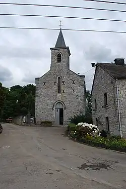 Presque en face de la ferme située Ozo, n°14, au-dessus de six marches et entourées par deux marronniers, la chapelle dédiée à Notre-Dame de Lourdes date de 1920. Elle est construite par Jules Dallemagne en moellons de calcaire avec un chevet à pans coupés. La porte d'entrée forme un arc très légèrement brisé surmontée d'une niche avec statue[3].