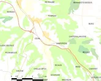 - ↑ « Orthodromie entre Ozon et Tournay », sur fr.distance.to (consulté le ).