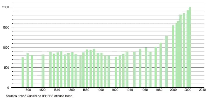 - ↑ Fiches Insee - Populations de référence de la commune pour les années 2006, 2007, 2008, 2009, 2010, 2011, 2012, 2013, 2014, 2015, 2016, 2017, 2018, 2019, 2020, 2021 et 2022.