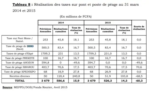 - ↑ « Ponts péages et de pesage du Bénin », sur La Nouvelle Tribune, (consulté le ).