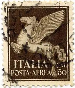 En Italie, Pégase est présent sur les billets de banque et les timbres. Pégase figure aussi sur une série de timbres thématiques du Sierra Leone, consacrés aux chevaux de la mythologie[13].