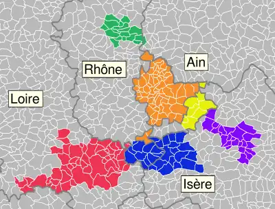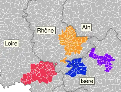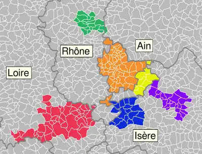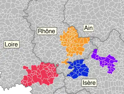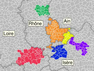 Département Métropole de Lyon, Rhône, Isère, Loire