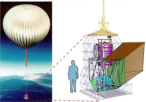 L'instrument scientifique et sa nacelle qui pèsent ensemble près d'une tonne sont embarqués sous un ballon stratosphérique d'un diamètre de 140 mètres et de 170 mètresde haut et de plus de 800 000 m3 de volume. L'ensemble comprend également un parachute qui est utilisé pour récupérer l'ensemble nacelle et instrument à la fin du vol. La nacelle d'une masse de 306 kg comprend une structure conçue pour amortir l'atterrissage. La nacelle est orientable en azimut. La nacelle emporte les différents équipements nécessaires pour permettre le fonctionnement de l'instrument et le recueil des données : système de production et de distribution de l'énergie, système de télécommunications, calculateurs [2].