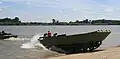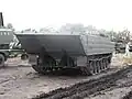 PTS-M est un véhicule de transport de troupes amphibie chenillé militaire soviétique capable de transporter des véhicules sur son toit et de les transporter sur l'eau à la manière d'un bac ou d'un ferry.