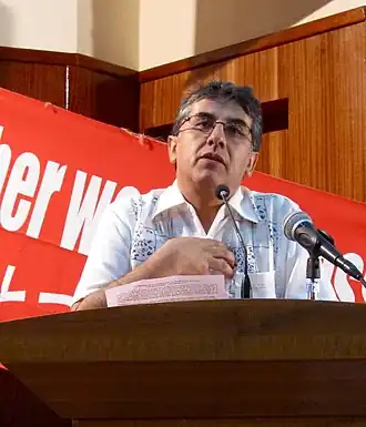 Pablo Solón Romero est un homme politique bolivien qui fut ambassadeur de la Bolivie aux Nations unies de à la fin . L'année suivante, il est devenu directeur exécutif de l'organisation altermondialiste "Focus on the Global South", jusqu'en 2015. Il est le fils d'un célèbre[réf. nécessaire] peintre bolivien de fresques murales, Walter Solón Romero Gonzáles.