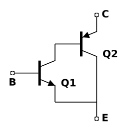 Ce montage est couramment utilisé pour obtenir un transistor capable de supporter de forts courants, tout en ayant un gain supérieur à celui d'un seul transistor, à la manière du montage Darlington[1].