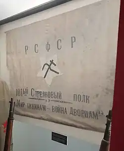 La bannière du 101e régiment d'infanterie soviétique, pendant la Guerre soviéto-polonaise, de février 1910 à mars 1921 portait pour devise ce slogan.
