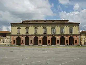 La façade du bâtiment domine la piazzale delle Cascine, scéniquement située sur un grand espace relié à la piazzale Kennedy (sur l'Arno) par un système quadrangulaire de parterres de fleurs avec un grand bassin d'une fontaine au centre.