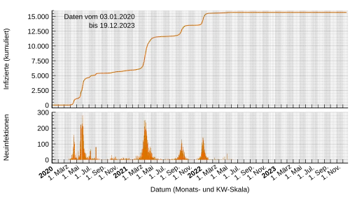 Le , le cap des 10 cas est dépassé. Le nombre de cas de Covid-19 confirmés est de 11.