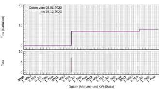 Le 20 mars, l'épidémie cause un premier décès[66], un deuxième le 23 mars[69] puis un troisième le lendemain[70]. L'épidémie est en très grande majorité concentrée sur Wallis ; à Futuna, une dizaine de cas sont enregistrés et la situation est jugée stable fin mars[72].