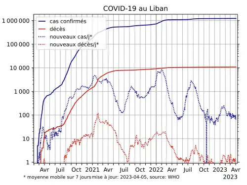 La pandémie de Covid-19 au Liban démarre officiellement le . À la date du , le bilan est de 10 706 morts.