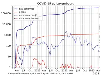La pandémie de Covid-19 au Luxembourg démarre officiellement le . À la date du , le bilan est de 1 123 morts.