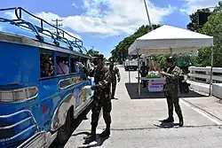 En raison de l'augmentation des cas à Cebu malgré le QCR, des mesures plus sévères ont été adoptées. Le 22 juin, le président Duterte a ordonné à Roy Cimatu, secrétaire du ministère de l'Environnement et des Ressources naturelles, de diriger et de superviser la réponse à la Covid-19[46],[47]. Soutenus par des soldats de l'armée philippine, des membres de la Force d'action spéciale de la police nationale philippine et des véhicules blindés, des patrouilles ont été effectuées dans des zones où il y avait de nombreux cas ou des violations de la quarantaine signalées telles qu'à Barangay Luz, Barangay Alaska Mambaling, Barangay Calamba, et Barangay San Nicholas[48]. Les responsables de l'Inter-Agency Task Force on Emerging Infectious Diseases (IATF) ont également mené des études aériennes de Cebu en collaboration avec l'armée de l'air philippine[47],[49].