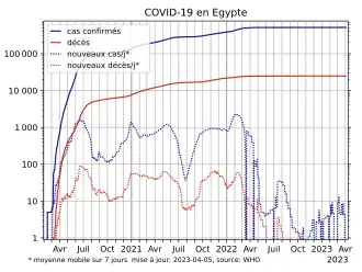 - ↑ « CORONAVIRUS - Égypte : Evolution du Coronavirus », sur Politologue.com (consulté le ).