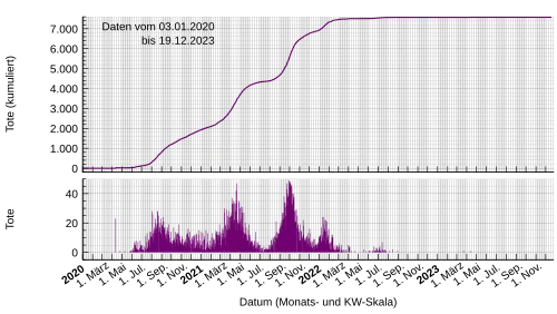 Le 13 septembre 2020, le cap des 1 000 morts est dépassé[7]. Le nombre de morts de la Covid-19 est de 1 013.