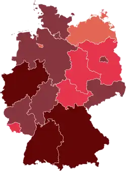 Le taux de mortalité par habitant/région — Länder — en Allemagne se situe entre ceux d'Europe de l'Est et d'Europe de l'Ouest. Les régions de l'ancienne RDA sont trois fois moins touchées que celle de l'ancienne RFA.