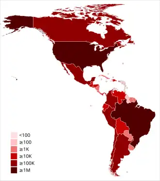 Le , les États-Unis ont recensé plus de 6 000 000 cas confirmés, le Brésil plus de 3 800 000, le Pérou, la Colombie et le Mexique chacun plus de 600 000, le Chili et l'Argentine tous deux plus de 400 000, suivis de la Bolivie, de l'Équateur et du Canada, avec chacun plus de 100 000 cas confirmés. Les États-Unis ont enregistré plus de 180 000 décès confirmés, le Brésil plus de 120 000, le Mexique plus de 60 000 et le Pérou plus de 20 000.