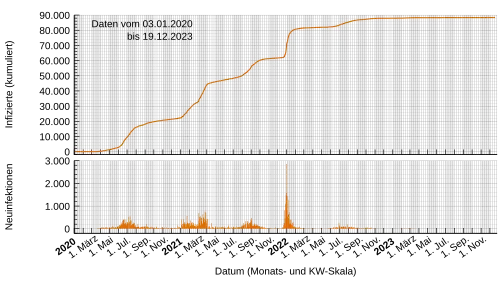 En 2023 il y avait 443 nouveaux cas et quatre décès, portant le nombre de cas à 88 384 dont 835 décès.