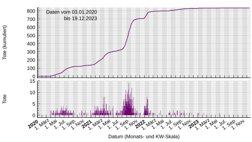 En décembre il y avait 54 nouveaux cas et un décès, portant le nombre de cas à 87 941 dont 831 décès[65].