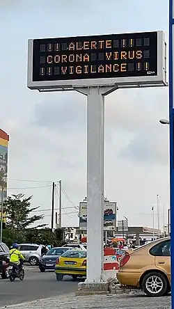 - ↑ « Covid-19 : 3 nouveaux cas enregistrés, portant à 168 le nombre de cas confirmés dont 06 guéris et 01 décès. (Ministère) - Abidjan.net Flash Info », sur Abidjan.net (consulté le )