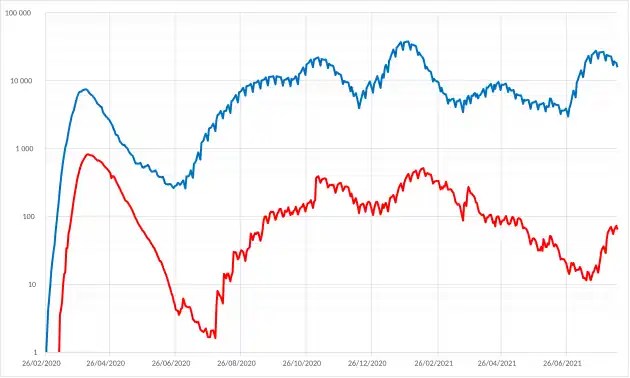 Au 11 juin 2021, le nombre total de cas est de 3 729 458, le nombre de décès de 80 465 avec un taux de mortalité à 2,16%[44].