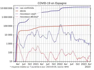 Le 2 mars 2022, le gouvernement espagnol annonce que la barre des 100 000 morts est dépassée[45].