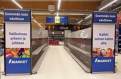 Comme dans d'autres pays, l'émergence du virus a augmenté les ventes et le stockage de produits quotidiens, tels que l'épicerie et les produits d'hygiène. Les craintes de quarantaine et les pénuries potentielles ont conduit à des achats de panique, en particulier de produits en conserve, de désinfectant pour les mains et de papier hygiénique[39]. Le , la Central Finnish Cooperative Society (filiale du groupe S) a signalé un nombre estimé à deux à trois fois plus de visiteurs que d'habitude[40]. Kesko a également signalé des augmentations similaires. La pratique de l'auto-isolement a également accru la demande d'épiciers en ligne.