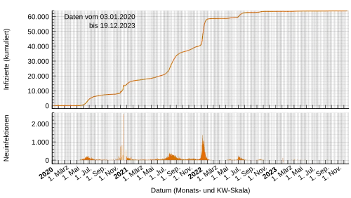 Le premier cas est constaté le 13 mars 2020[2], suivi par le premier décès le 30 mars[3].