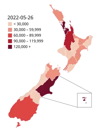 En mars le pays annonce lever progressivement ses restrictions, le gouvernement estimant que 95% des Néo-Zélandais étant entièrement vaccinés, le niveau d'immunité collective est élevé[9], malgré la brusque flambée due au variant omicron[10]. Mais le mois suivant le nombre de décès augmente pour atteindre un pic en août et faire passer le nombre total de décès de 570 le 19 avril à 2454 décès le 8 août[11].
