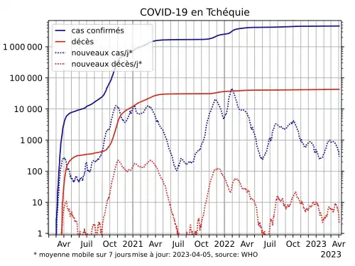 - ↑ (en) « Czechia - COVID-19 Overview - Johns Hopkins », sur Johns Hopkins Coronavirus Resource Center (consulté le )