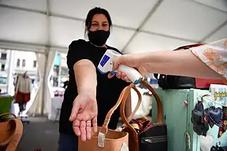 Un contrôle de température à Montevideo durant la pandémie.