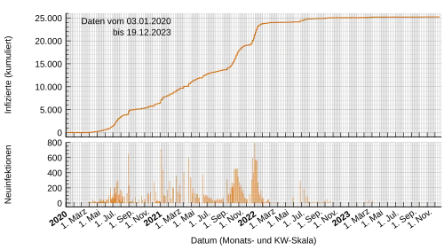 - En il y avait 11 nouveaux cas, portant le nombre de cas à 24 114 dont 385 décès[22].