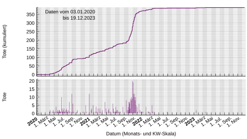 - En novembre il y avait 484 nouveaux cas et deux décès, portant le nombre de cas à 5 774 dont 94 décès[6].