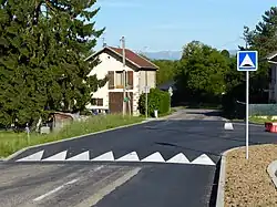 Hors zone 30, la signalisation des surélévations de chaussée (ralentisseurs de type dos d’âne, plateaux surélevés, coussins) est obligatoire. Le panneau doit être exclusivement implanté en signalisation de position. Il ne doit pas être complété par un panonceau[B 1].
