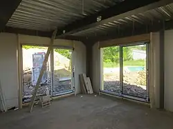 - couche d'isolant intérieur rigide d'environ 30 à 200 mm d'épaisseur, de haute performance mécanique et thermique en mousse de polyuréthane (PUR), polyisocyanurate (PIR), laine de roche, nid d'abeilles, etc.