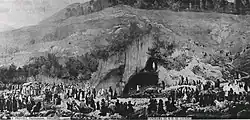 Scène à gauche de la scène centrale de l'apparition du Panorama de Notre Dame de Lourdes. Photographie prise vers 1890 par A Provost pour le dépliant sur le Panorama.