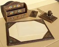 Un papier buvard pouvait être monté sur un support cintré muni d'une poignée : le tampon-buvard était un accessoire de bureau courant.