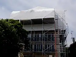 - Un parapluie est une structure provisoire de protection d'un bâtiment sinistré ou en travaux, par exemple construit avec des éléments d'échafaudage et des bâches.