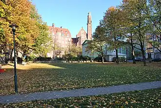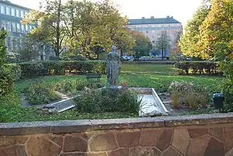 Dans la partie ouest du parc, en direction de Birger Jarlsgatan, se trouvent une terrasse extérieure et une jardinière encadrée de plantes vivaces et de bancs.