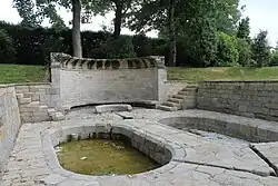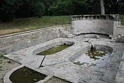 Les moines se nourrissaient des poissons du vivier, le plus grand bassin. Le bassin central, en demi-lune, pouvait servir le pédiluve (les moines étaient pieds nus dans des sandales de cuir). Une exèdre semi-circulaire, qui servait probablement à la méditation des moines, domine les deux bassins plats de forme ovalisée.